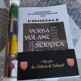 A la suite de la visite du Château de Talmont Saint Hilaire avec mon fils, ce dernier a souhaité m'offrir un kit de calligraphie car il sait que j'aime apprendre des nouvelles choses ; et je ne vous cache pas que ça me trottait depuis un moment dans le coin de ma tête